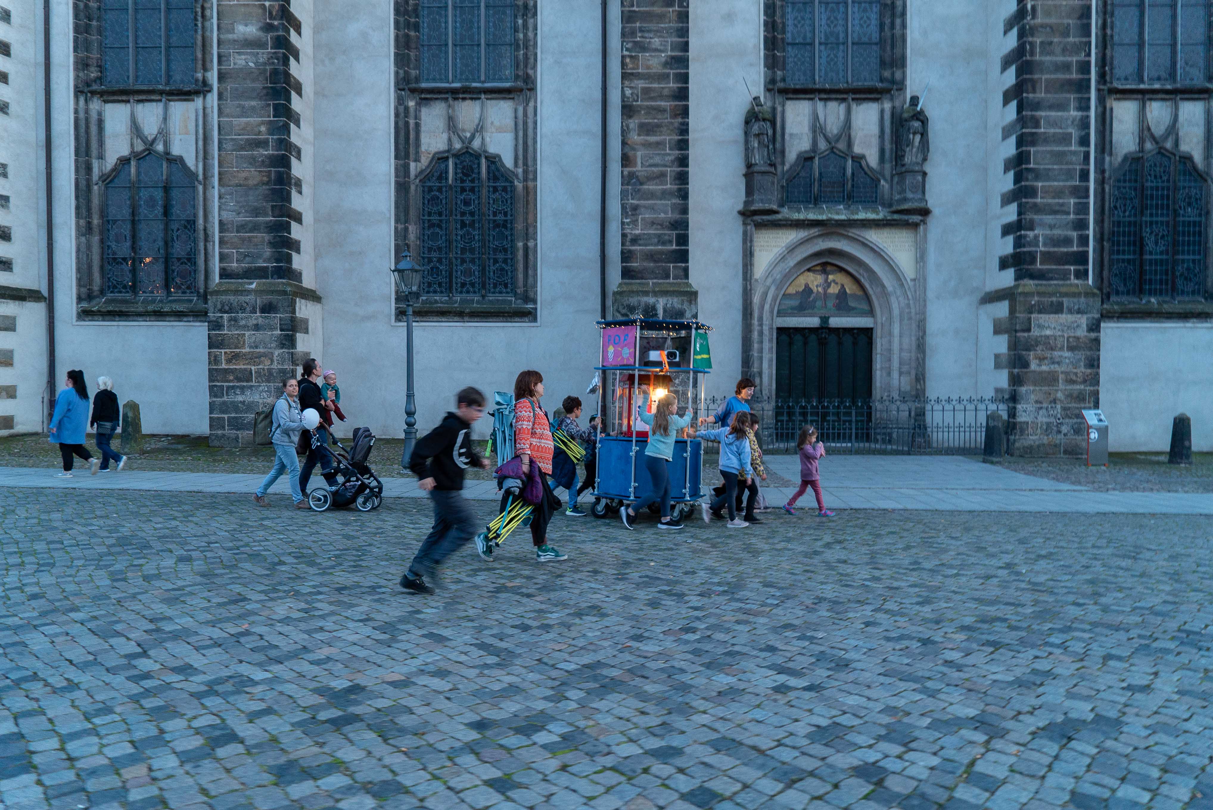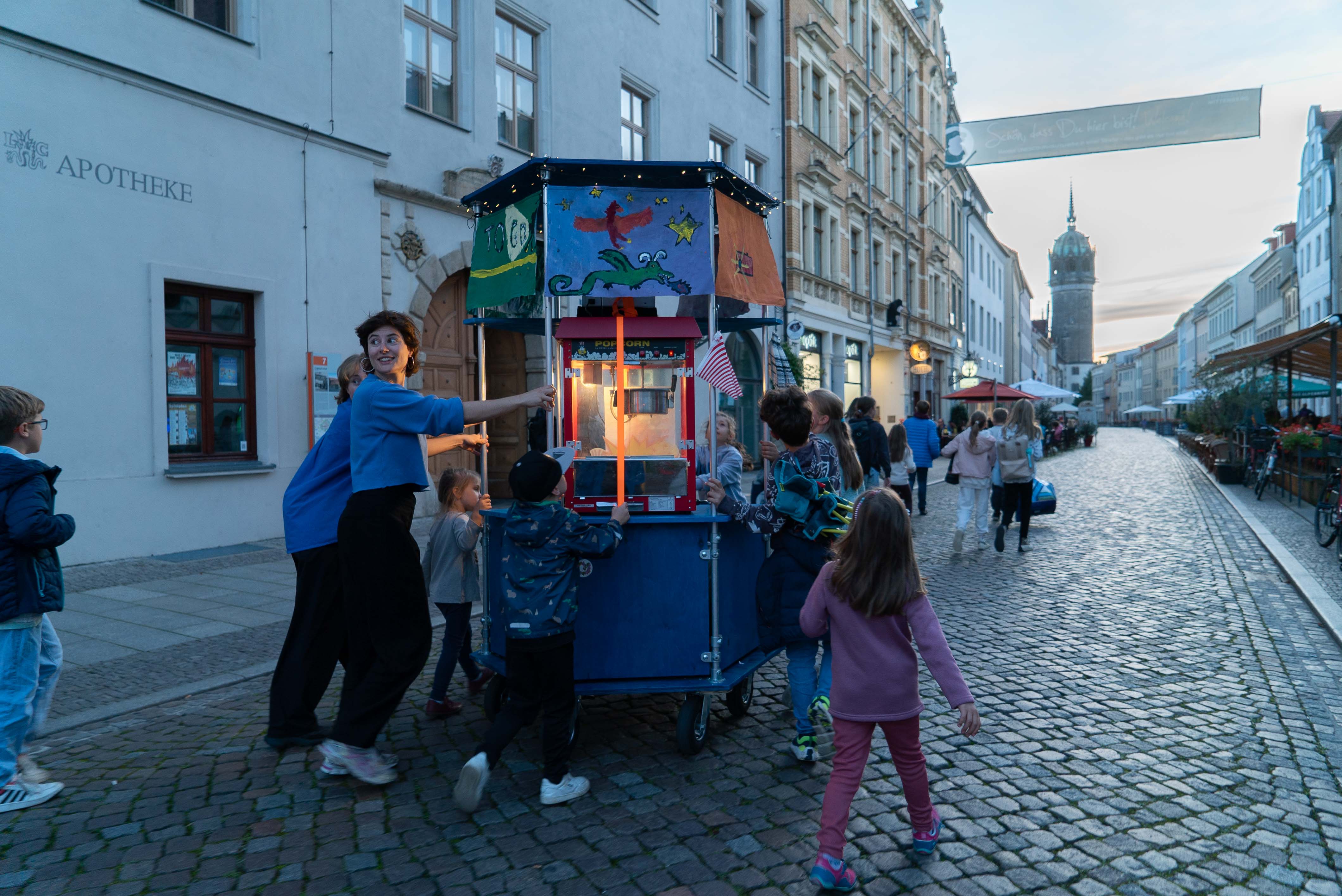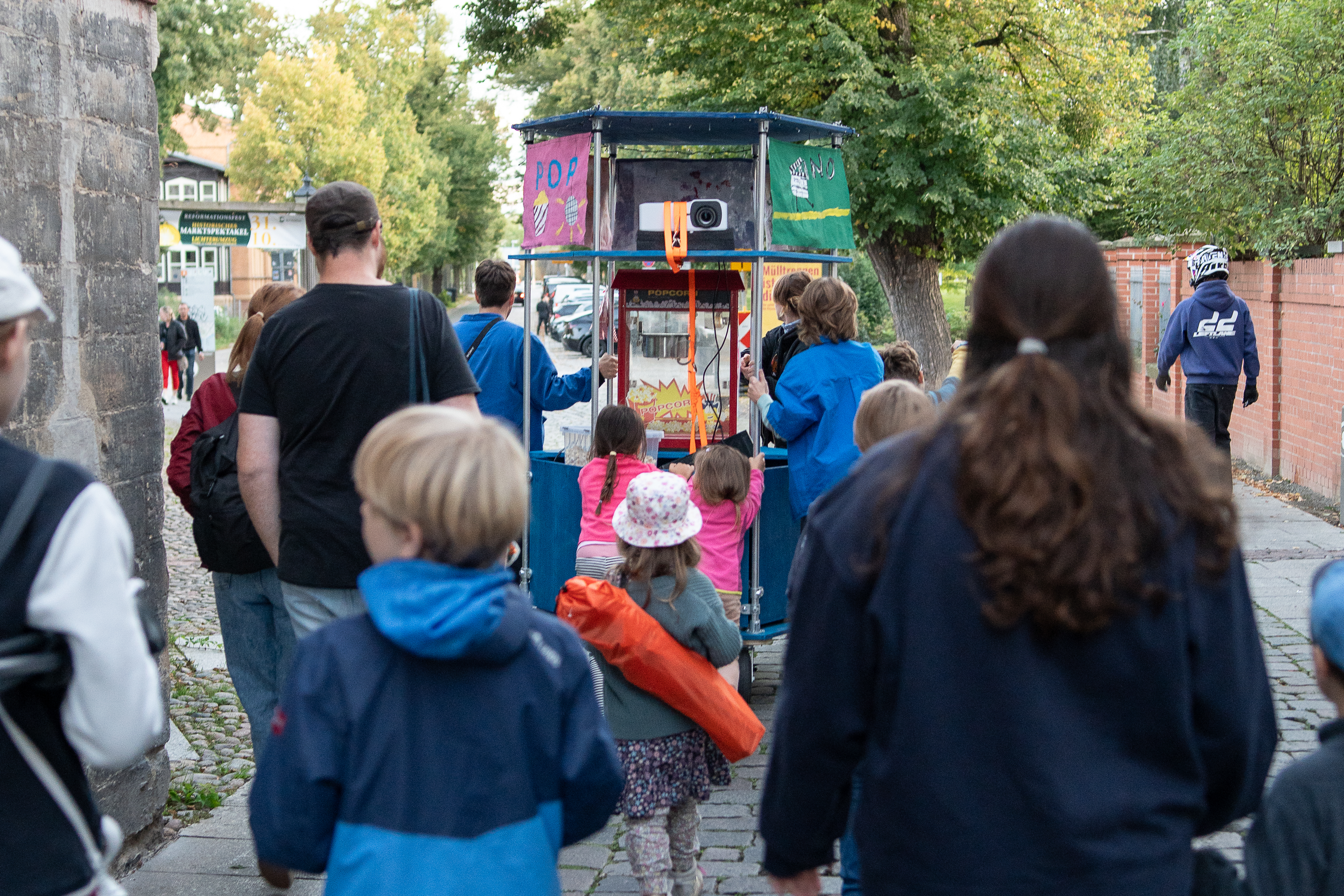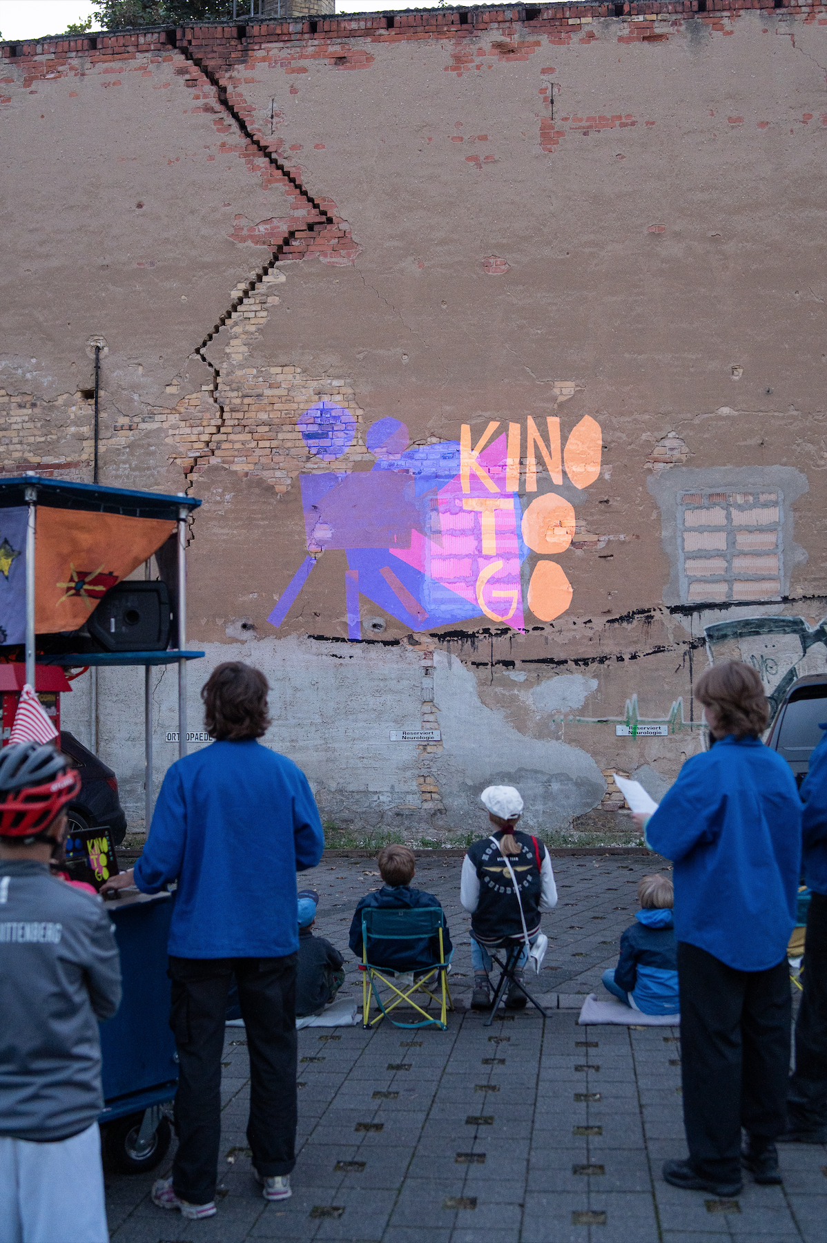 Kino to Go is a mobile film festival in Lutherstadt Wittenberg. Together with youngsters, we built a cinema on rolls, explored the walls of the city and selected different places to screen the films.